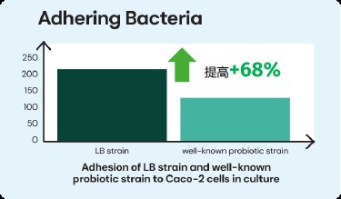 与许多其他乳杆菌菌株相比,用于生产Humiome® Post LB的菌株具有较强的直接粘附分化的肠上皮细胞的能力。